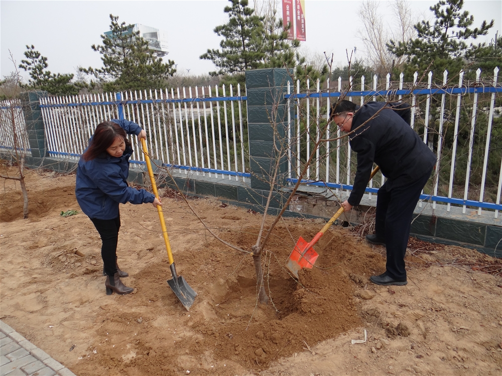 員工齊心協(xié)力、鼓足干勁,挖坑,培土,一陣忙碌之后,一株株果樹筆直的挺立在三月的和煦春風(fēng)里。活動結(jié)束后,參加植樹的全體員工進(jìn)行了合影留念。
