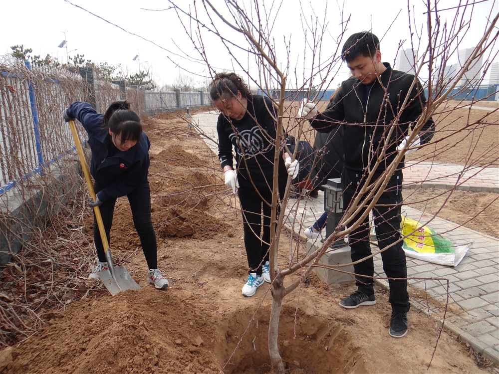 早春三月天,草長鶯飛間,冬天的寒意還未褪盡,春天帶著綠色的氣息已向我們走來,雖然今日氣溫不太高,但是大家植樹的興致都很高。后勤管理中心負(fù)責(zé)果園的工作人員教大家相關(guān)種植技術(shù),對果樹陰陽朝向進(jìn)行分析,最大可能的保證樹種成活率。認(rèn)真學(xué)習(xí)了種植技術(shù)后,員工開始搬運準(zhǔn)備好的樹苗,大家彼此合作完成全部樹苗的栽種,體會到了照顧樹苗的不易和親自栽種樹苗的快樂,現(xiàn)場氣氛熱烈。